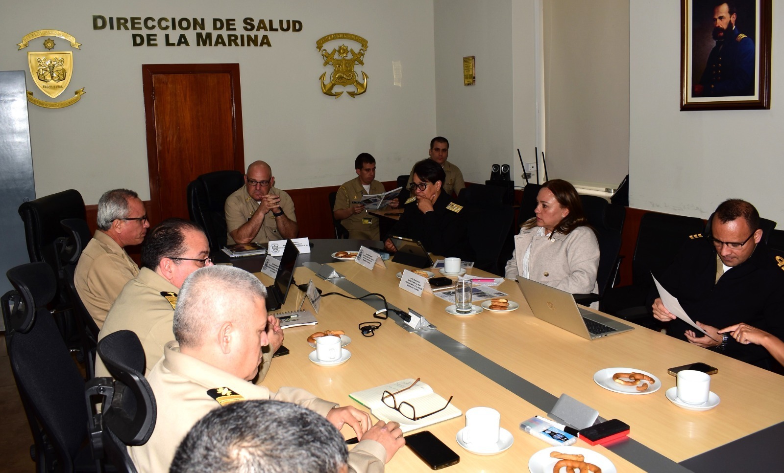 Durante la jornada se llevó a cabo una reunión de trabajo presidida por el Director General del Personal de la Marina, Vicealmirante Percy Antonio Pérez Bramosio, quien estuvo acompañado por el Subdirector General del Personal de la Marina, Contralmirante Carlos Guerrero Malpartida; el Director de Salud de la Marina, Contralmirante Salomón Morán Peñafiel, así como por oficiales en comisión.