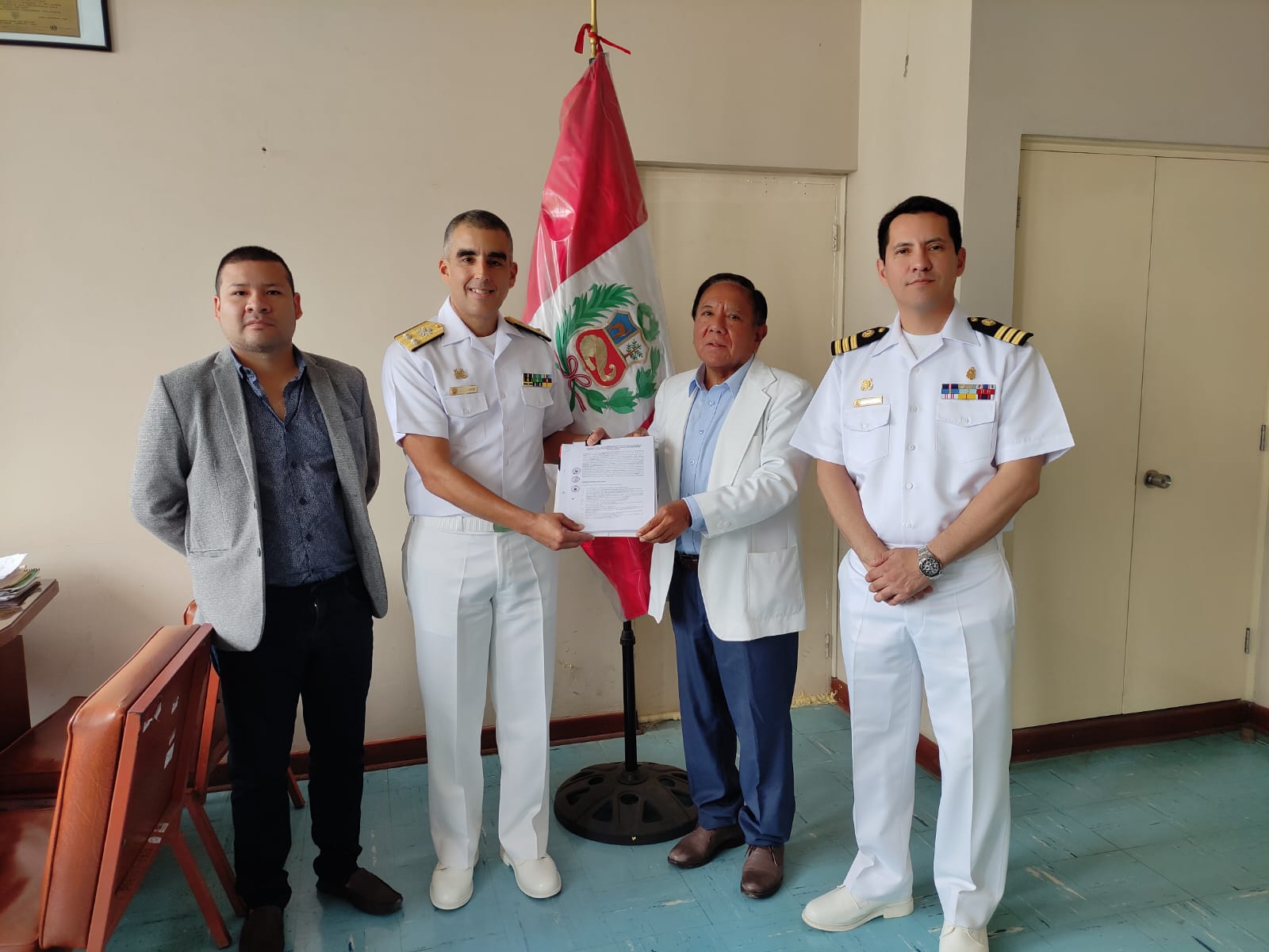 Este trascendental acuerdo contó con la distinguida presencia de representantes de la Marina de Guerra del Perú, destacando la participación del Director General del Personal de la Marina, Valm Percy Perez Bramosio, el Sub Director General de Personal de la Marina, Antonio Vildoso Concha, y el Director de Salud de la Marina, Oscar Oliva Angulo.