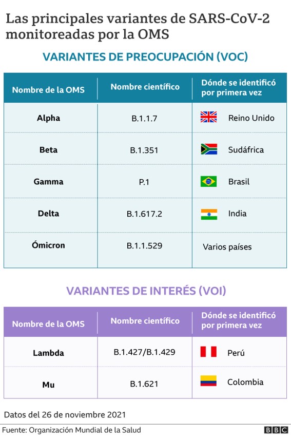 Así es como la B.1.1.7, descubierta en Reino Unido, se convirtió en alfa; la B.1.351 (Sudáfrica) se convirtió en beta; la P.1 (Brasil) se convirtió en gamma; la B.1.617.2 (India) en delta; y la B.1.1 .529 (Sudáfrica) en ómicron.
