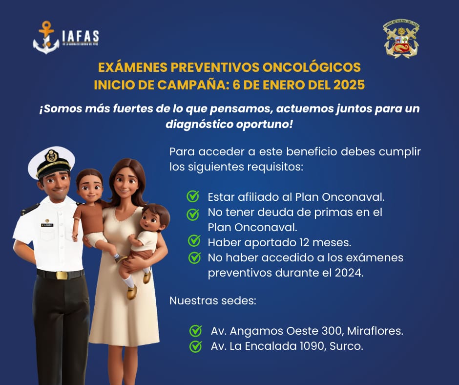 - Los exámenes se realizarán para el personal afiliado al Plan Onconaval.