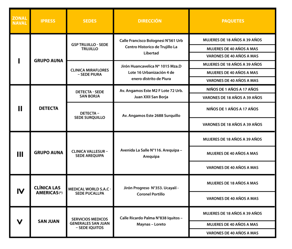 (*)Nota: Nueva IPRESS – Clínica Las Americas